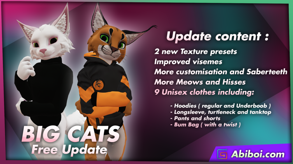 A Big Cat base avatar for Vrchat with multiple Specie preset !